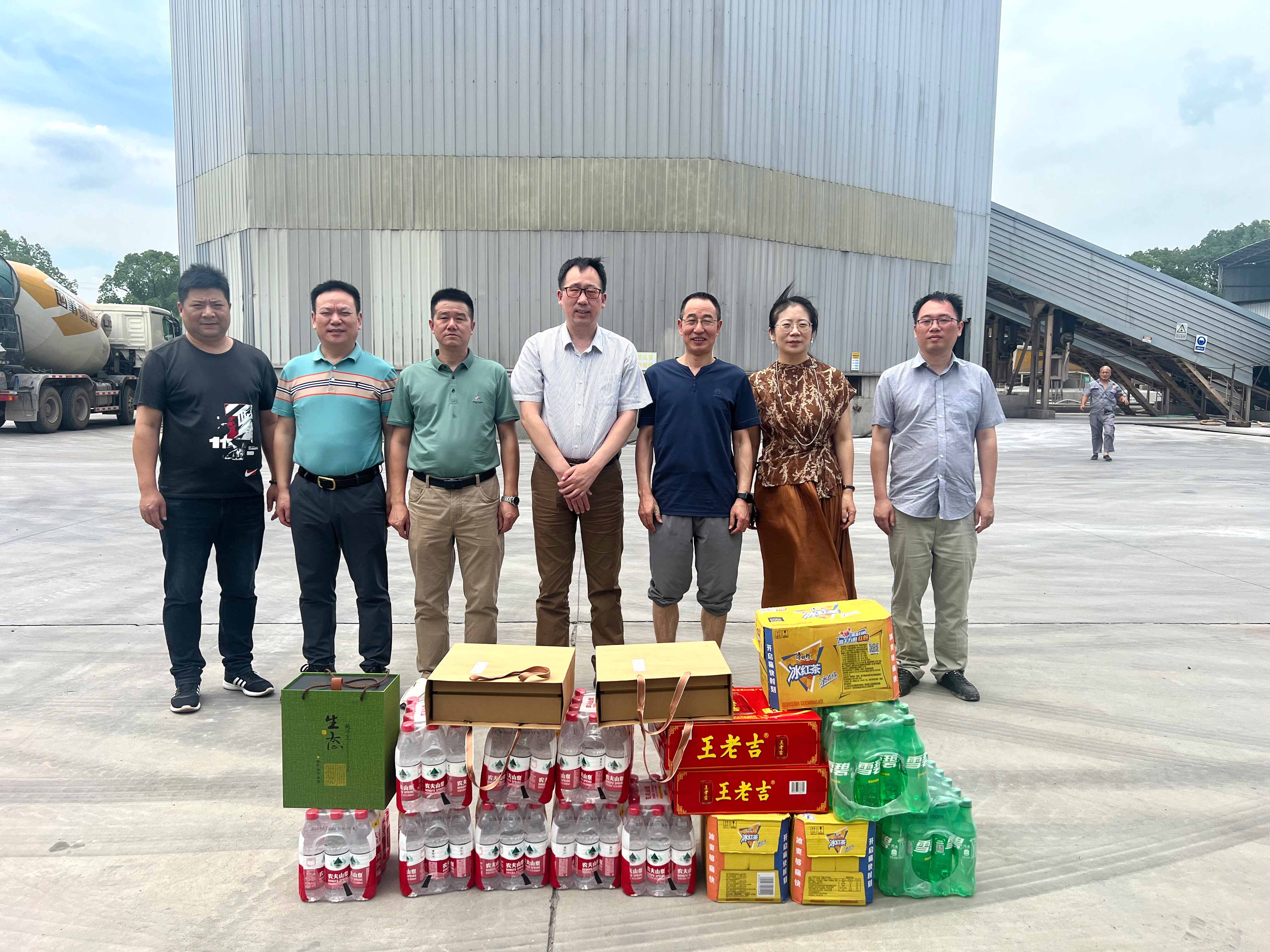 集團(tuán)高管層分三路慰問(wèn)近20家子公司。走訪中,集團(tuán)領(lǐng)導(dǎo)深入子公司生產(chǎn)場(chǎng)地,了解各家公司的生產(chǎn)任務(wù)安排和員工的作息排班情況?!按蠹倚量嗔?,高溫天氣一定要做好防暑降溫工作!”在高溫工作現(xiàn)場(chǎng),傅融總裁代表集團(tuán)向奮戰(zhàn)在一線的員工致以親切的問(wèn)候,并為他們送上冰紅茶、王老吉、礦泉水等清涼物資,對(duì)他們?cè)诟邷叵聢?jiān)守崗位表示感謝。傅總叮囑大家工作中要增強(qiáng)安全防護(hù)意識(shí),落實(shí)好防暑降溫措施,確保安全生產(chǎn),平安度夏。